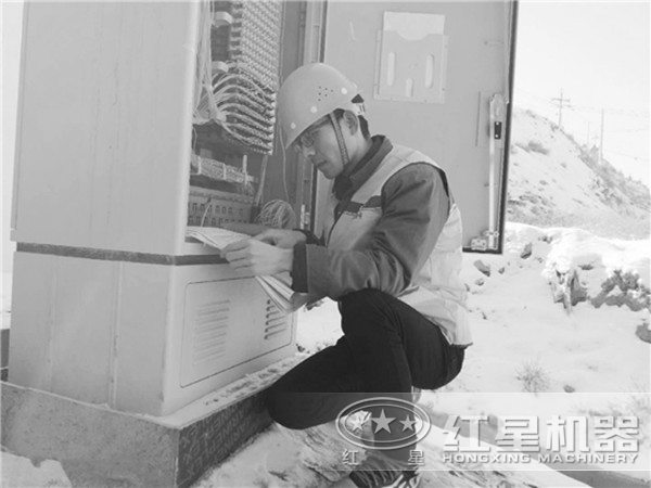 抵達現(xiàn)場后,服務(wù)團隊按照應(yīng)急預(yù)案分工,在風(fēng)雪中對生產(chǎn)現(xiàn)場的顎式破碎機、反擊式破碎機、振動篩、配電箱等各項設(shè)備逐一進行排查,經(jīng)過近3個小時的奮戰(zhàn),問題得到順利解決。
