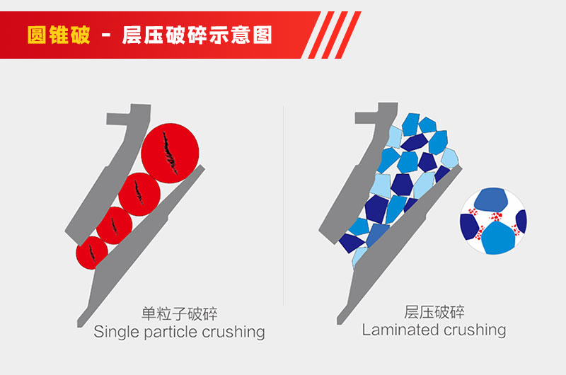以目前在中細(xì)碎領(lǐng)域大顯身手的圓錐破來(lái)說,它的產(chǎn)品粒度較均勻、能源消耗少。但在它出場(chǎng)的初期并不是那么優(yōu)秀,在生產(chǎn)中存在很多缺點(diǎn),如成品針片狀含量較多、粒形不夠好。后來(lái),針對(duì)這些問題,業(yè)界提出了層壓破碎原理,并依此進(jìn)行了工藝上的改進(jìn)。