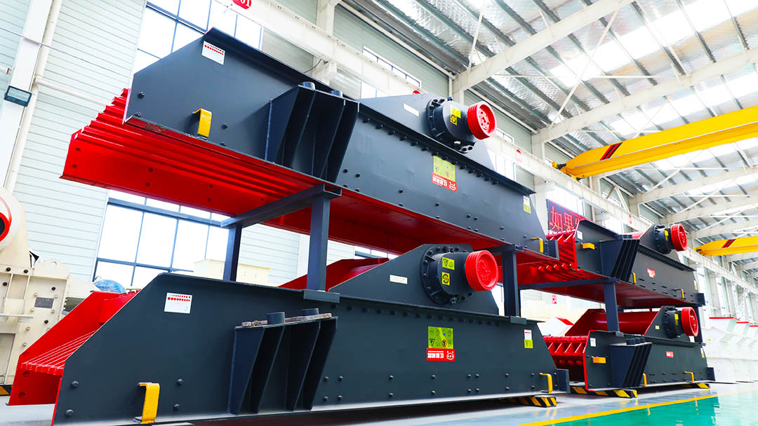 振動(dòng)給料機(jī)是機(jī)制砂石生產(chǎn)中重要的輔助設(shè)備。振動(dòng)給料機(jī)在生產(chǎn)中可以將塊狀或顆粒狀的物料連續(xù)均勻的送至破碎設(shè)備。振動(dòng)給料機(jī)后邊經(jīng)常搭配的是顎式破碎機(jī),振動(dòng)給料機(jī)的工作性能不僅對(duì)顎破的產(chǎn)能有重要影響,對(duì)整條生產(chǎn)線的生產(chǎn)效率也有很大的影響。